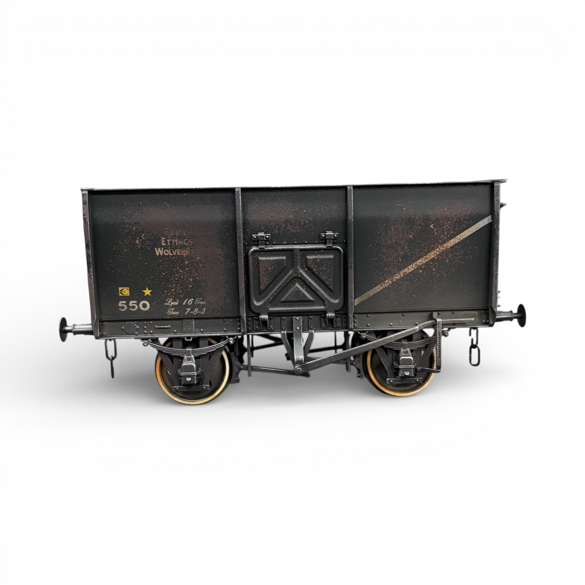 Each wagon is uniquely weathered. The image shows the wagon that you will receive