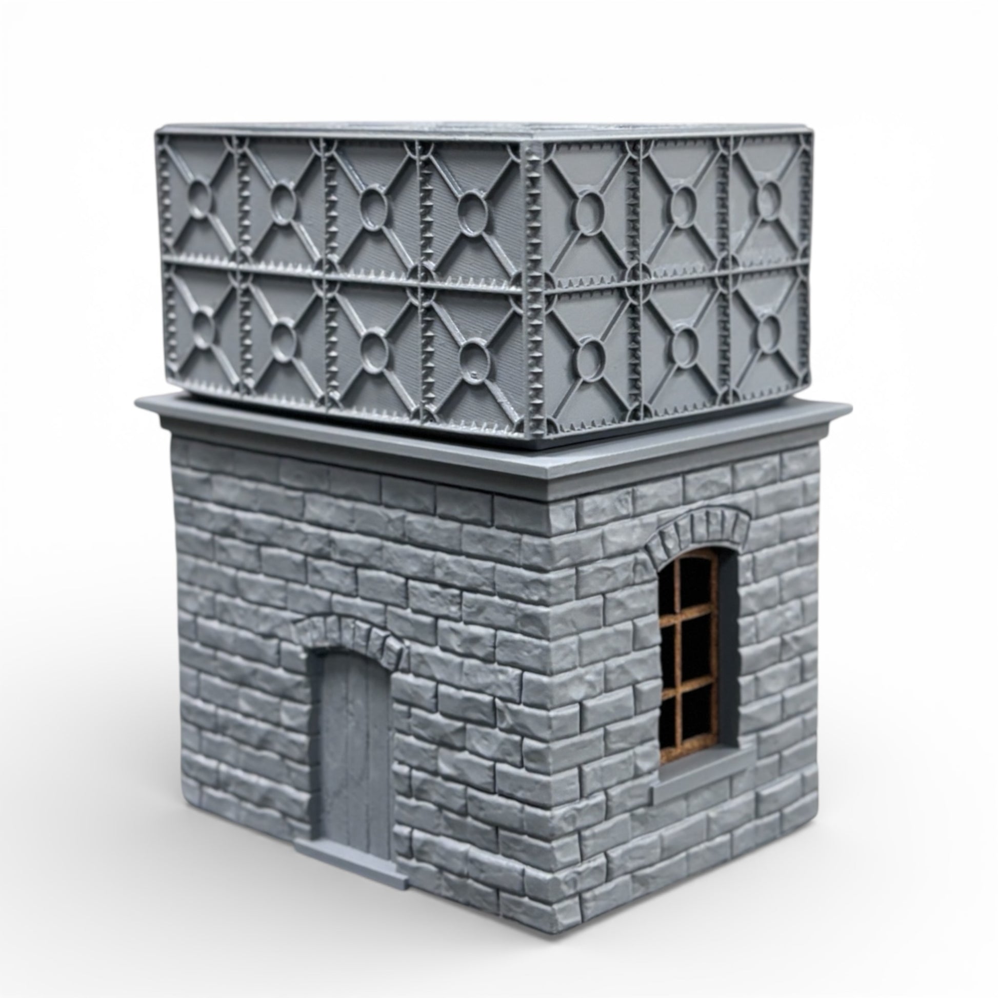 Resin printed 2 piece construction, separate building and tank sections