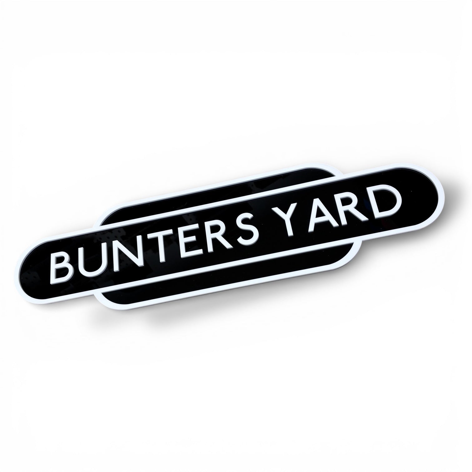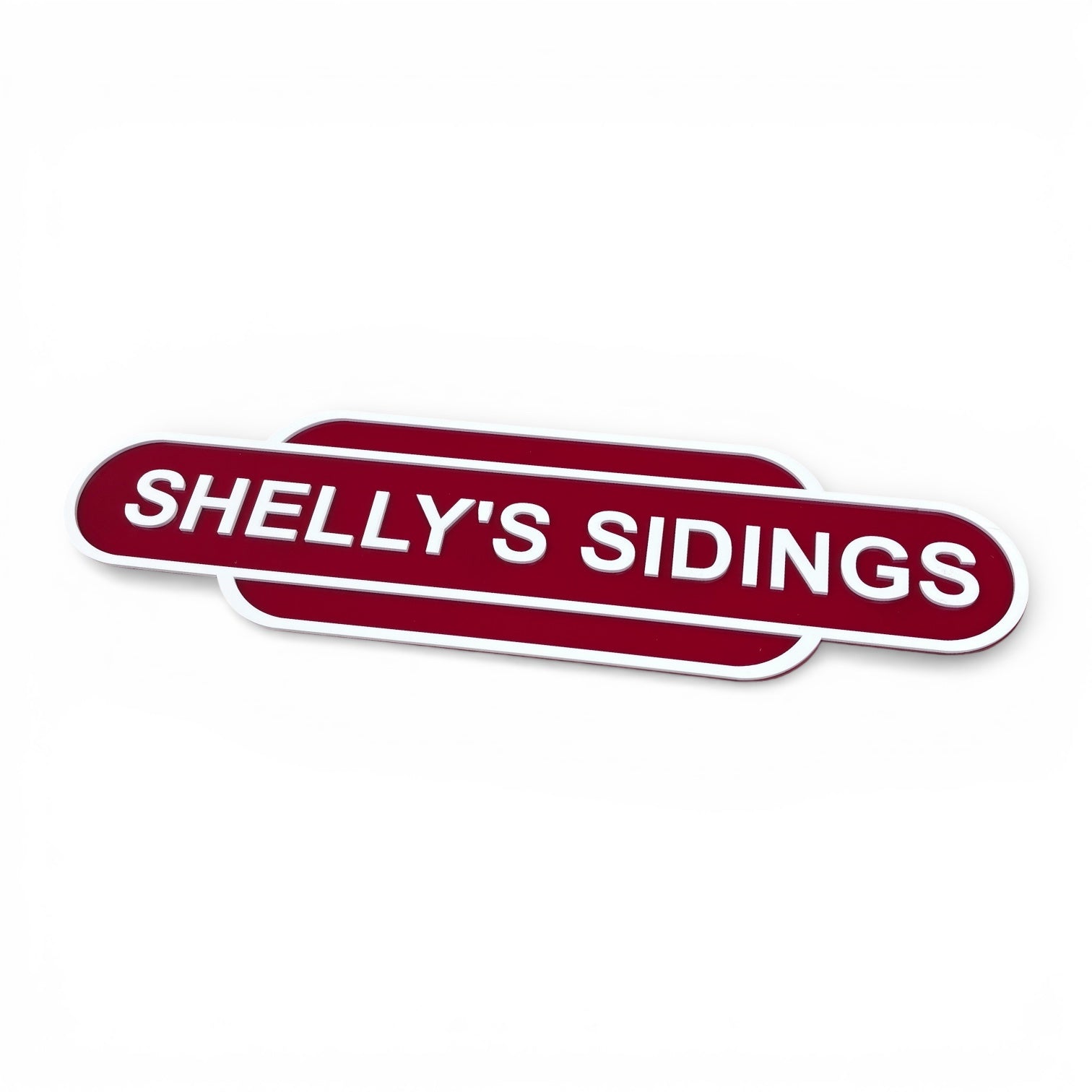 Personalised Railway Totem made from 3mm high gloss perspex with 3mm white lettering and edging for a true 3d effect.