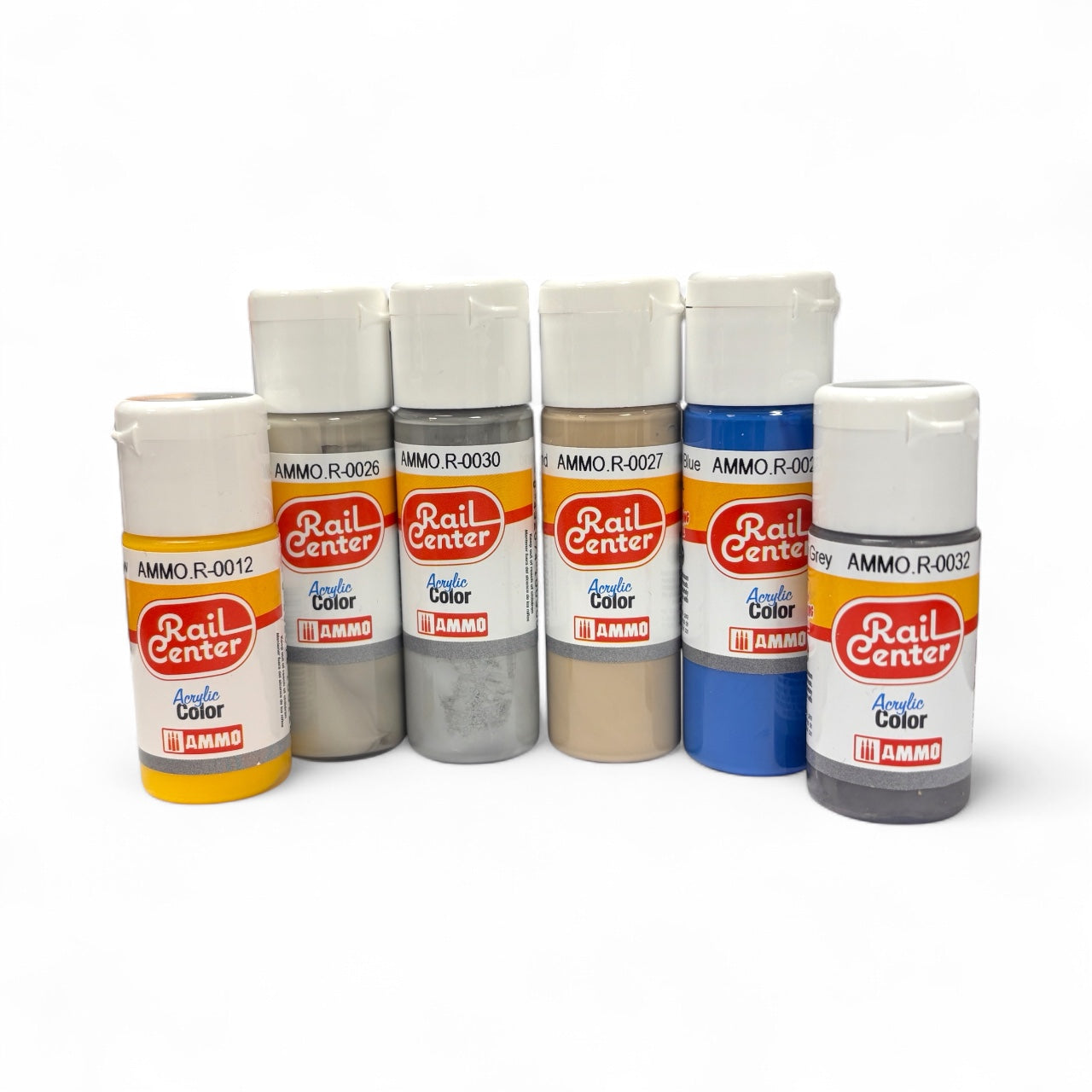 Rail Center acrylic colour set for brush and airbrush 15 ml - 6 colours.