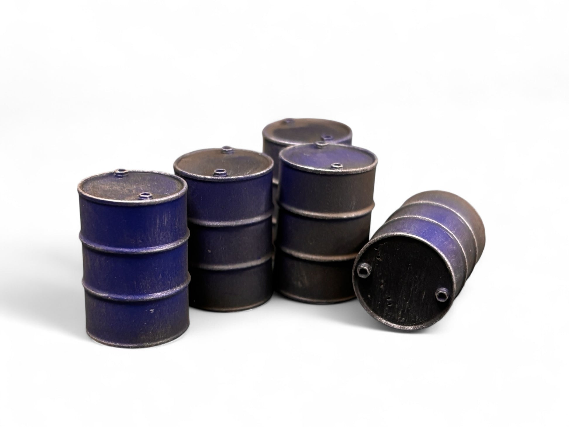 Our oil drums are painted in durable enamels in a solid colour, and weathered with shades of grime and oil. Each one is hand finished and unique.