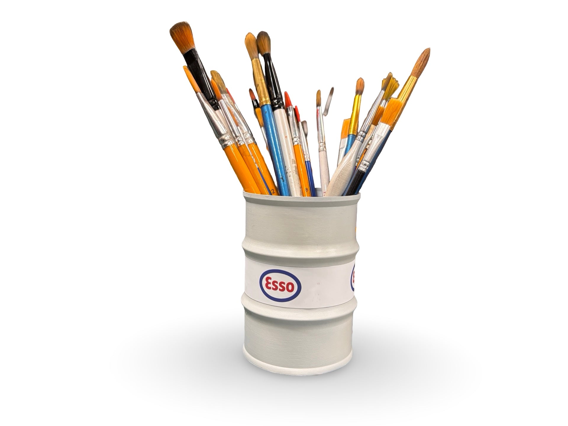 Paint Brush or Pen Pot - White Esso Oil Drum