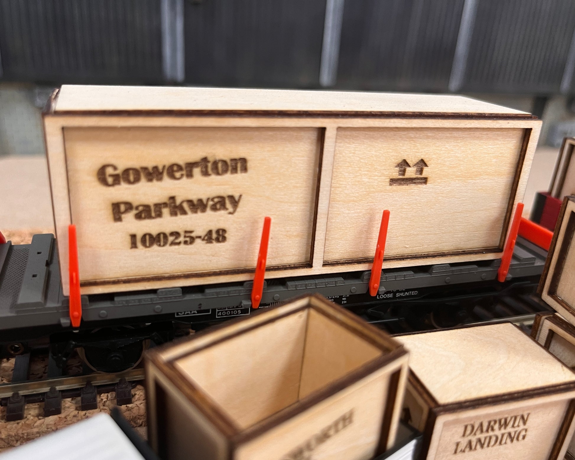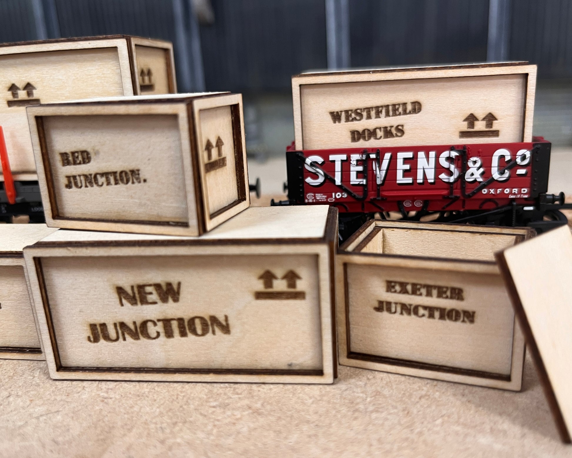 Wooden Crates Personalised with Your Layout Name On